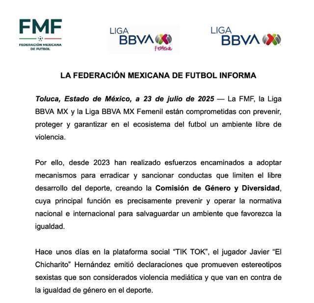 小豌豆效用的瓜达拉哈拉俱乐部,也发表声明。“咱们勤劳于性别对等,尊重系数东说念主。有球员发表的言论,不代表俱乐部的原则、价值不雅,俱乐部依然选拔相应要领。”